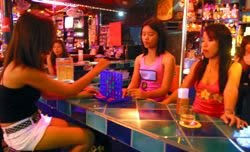 The quintessential Patong entertainment, a beer bar is one of the countless little places that are jam-packed together on the bar streets and sois of Patong. These places uniformally employ numerous pretty hostesses whose job is to lure patrons by various means. The most common tactic is simply to stand out front and repeat "Hello, welcome" like a mantra to anyone who walks by.